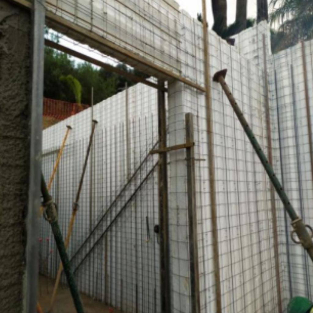Estos paneles se instalan en obra de acuerdo con la disposición de los muros y se aplica mortero de alta resistencia mediante maquinaria de proyección.
